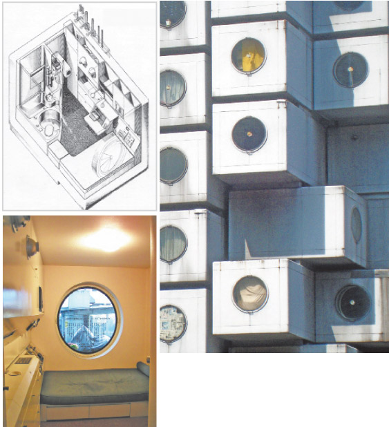 Это дома кубической формы (или несколько кубических комнат одного дома), в которых с достаточным комфортом может разместиться семья. Правда, ни о каком метаболизме здесь речь не идет. Хотя кубы, водруженные друг на друга, представляют собой весьма оригинальную бессистемную конструкцию, однако здание построено капитально, и вопрос замены одного кубика на другой в данном случае не стоит.